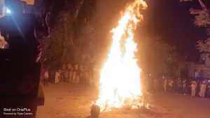 इसी प्रकार पूरे क्षेत्र व जिले में वाद्य यंत्रों की मंगल ध्वनि व जयकारों के साथ होली का दहन किया।