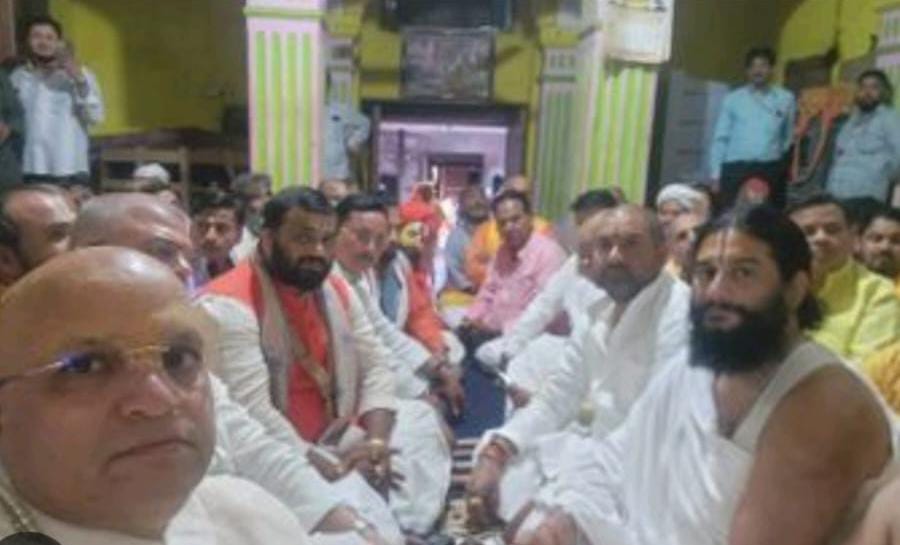 बावन मंदिर स्वर्गद्वार में विक्रमादित्य महोत्सव समिति की बैठक में शामिल संत व संघ परिवार समेत तीर्थ क्षेत्र के न्यासी।