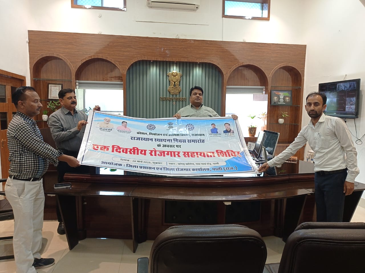 राजस्थान स्थापना दिवस के उपलक्ष में एक दिवसीय रोजगार सहायता शिविर बैनर का विमोचन बुधवार को जिला कलक्टर एलएन मंत्री द्वारा किया गया।