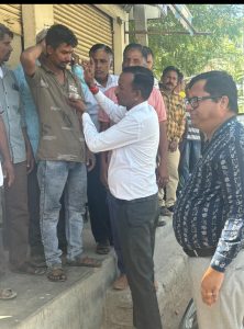हिन्दू नववर्ष पर लोगों को तिलक लगाकर दी बधाई।