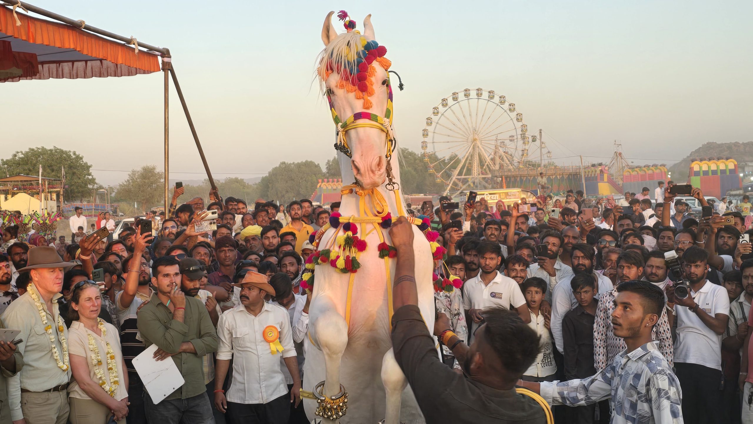 सारंगवास खेतलाजी तीर्थ धाम में आयोजित 51वें वार्षिक भव्य लक्खी मेले के प्रथम दिन भक्ति, शौर्य और सांस्कृतिक रंगों से सराबोर रहा। रविवार को सुबह मंदिर श्रृंगार और भव्य वरघोड़ा के साथ मेले का शुभारंभ हुआ। श्रद्धालुओं की भारी भीड़ उमड़ी, जिससे मंदिर परिसर और मेला स्थल खचाखच भरा नजर आया। शाम को आयोजित शानदार हॉर्स शो में विदेशी पर्यटकों ने दर्शकों का मन मोह लिया।