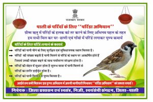 पाली के परिंदों के लिए “ परिंडा अभियान“ की शुरुआत 7 अप्रैल 2025 को जिले भर में होगी
