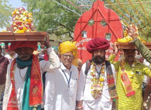 मेले में दूसरे दिन भोपाजी लकमारामजी। मेला चंद्रशेखर मेवाड़ा सरपंच व अचलाराम मेघवाल पूर्व मंत्री, पूरणमल जनवाणीया,दानाराम लोहार,इत्यादि ट्रस्ट पदाधिकारियों व सदस्यों ने समस्त भामाशाह,सहयोगकर्ताओं व गणमान्य नागरिकों व माताजी के उपासकों का साफा,शॉल,माला से स्वागत किया गया। मेला समिति की और से मेला शांति पूर्ण सम्पन्न करवाने व तन मन धन सहयोग करने वाले तमाम भक्तों आभार जताते धन्यवाद दिया। मंच का संचालन विक्रम आदिवाल ने किया।