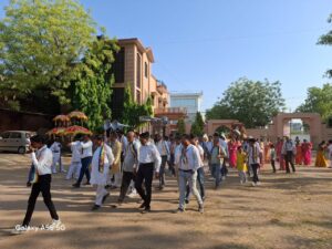जैन श्वेताम्बर मूर्तिपूजक तपागच संघ के बैनर तले आज भगवान महावीर स्वामी भगवान का जन्म कल्याणक शोभा यात्रा के साथ मनाया शोभायात्रा का शुभारंभ सर्वोदय पारसनाथ मंदिर से वल्लभ विहार,स्वर्ण मंदिर,दादा बाड़ी,केसरिया जी मंदिर पर संपन्न हुआ कार्यक्रम मैं गौरव बाल मंडल के द्वारा बैड की प्रस्तुति दी गई एवं धर्म चंद विजय मारा साहब ने कहा कि ईसा से 599 वर्ष पहले वैशाली गणतंत्र के क्षत्रीय कुंडलपुर में पिता सिद्धार्थ और माता त्रिशला के यहाँ तीसरी संतान के रूप चेत्र शुक्ल त्रेरस को वर्धमान का जन्म हुआ यही वर्धमान बाद में माहवीर स्वामी बना माहवीर को ‘वीर’, ‘अतिवीर’ और ‘सन्मति’भी कहा जाता है इस अवसर पर जैन संघ के अध्यक्ष अरुण चौधरी सचिव संभव जैन,रमेश शा,अमित मेहता,महेंद्र धोका,बाबूलाल पुनर्मिया,महेन्द्र भंडारी,आनंद चोपड़ा,अशोक परमार,प्रफुल जैन,साकलचंद खाटेड,पारसमल सोनीगरा,भेरुलाल कटारिया,पारस पोरवाल, रंजीतमल सिरोया,जयंतीलाल सिरोया,रमेश जैन,महेश नाहटा,महेन्द्र सुंदेशा,सुरेंद्र सोलंकी,अशोक मूठलिया,रमेश मेहता,दिनेश बोहरा,मुकेश जैन,राजेश मेहता,जयचंद गोलेचा,विकास खाटेड,सौरभ जैन,अंकित राठौड़,नरपत राठौड़,जयंतीलाल जगावत,सुभाष जैन,संदीप सिंघवी,देव राज मेहता,जितेंद्र लोढ़ा,संजय सिरोया,उत्तम मुठलिया,दिलीप नाहटा,धनराज सचेती,दलपत नाहटा,आदि लोग कार्यक्रम में उपस्थित थे*