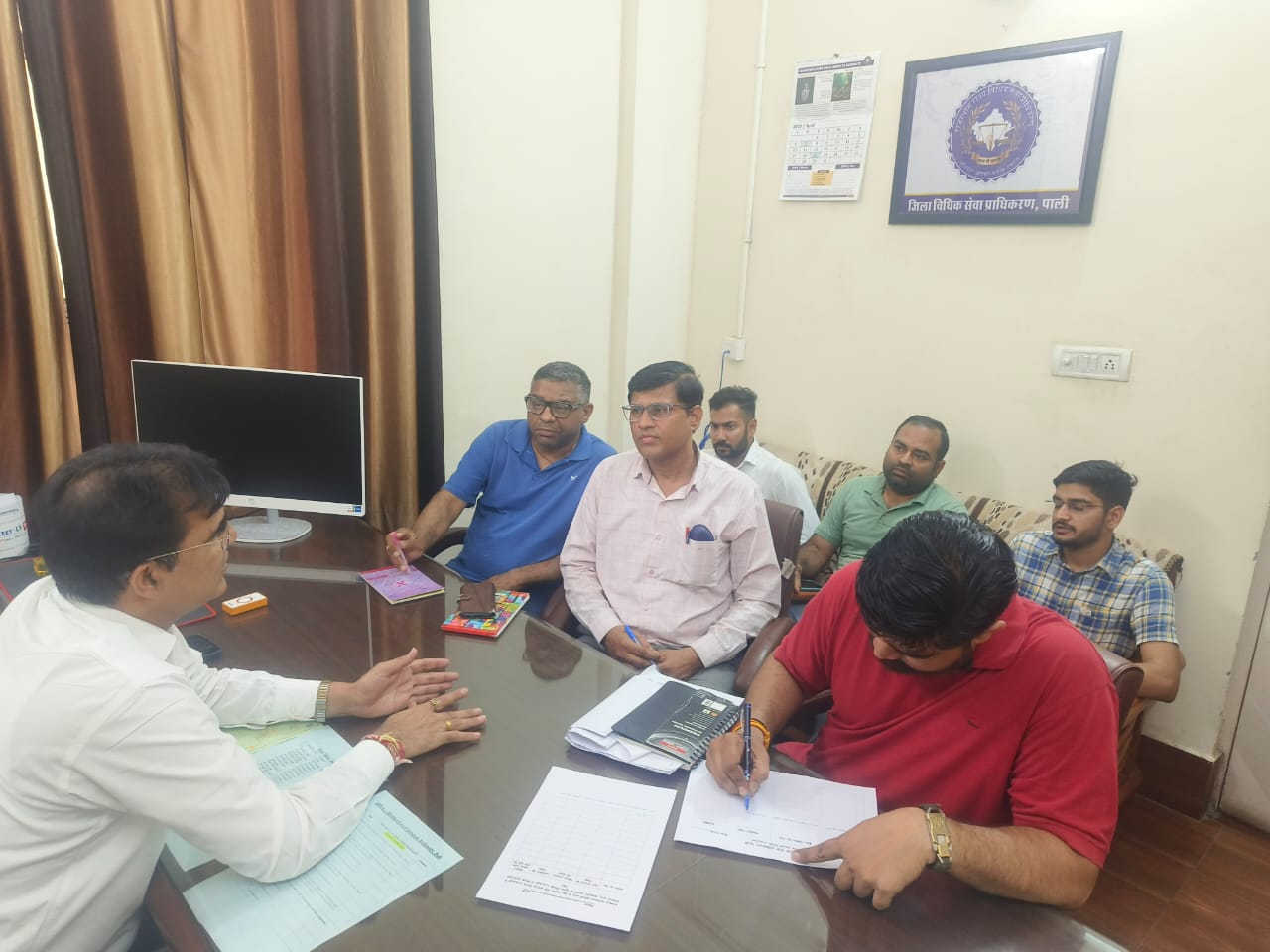 जिला विधिक सेवा प्राधिकरण (अपर जिला न्यायाधीश) सचिव विक्रम सिंह भाटी की अध्यक्षता में पाली मुख्यालय के बैंको एवं वित्तीय संस्थानों व राजकीय विभागों के अधिकारियों के साथ आज गुरूवार को बैठक का आयोजन किया गया। राजस्व प्रकरणों के क्रम में सीमाज्ञान, पैमाईश, नामान्तरण, शुद्धि प्रकरण आदि विभिन्न प्रकृति के प्रकरणों को लोक अदालत मे रेफर करने एवं प्री-काउंसलिंग के माध्यम से पक्षकारान मे राजीनामा के माध्यम से निस्तारण तथा बैंक एवं वित्तीय संस्थानों से उपस्थित अधिकारीगण को निर्देश दिये कि ऋण/बकाया बिलों की वसूली प्रकरणों का लोक अदालत में अधिक संख्या में निस्तारण होता है। अतः ऋण/बकाया बिलों के प्री-लिटिगेशन प्रकरण समय रहते प्रस्तुत करें ताकि पक्षकारान को समय पर नोटिस जारी किया जा सके एवं राजीनामा के समुचित प्रयास किये जा सकें।