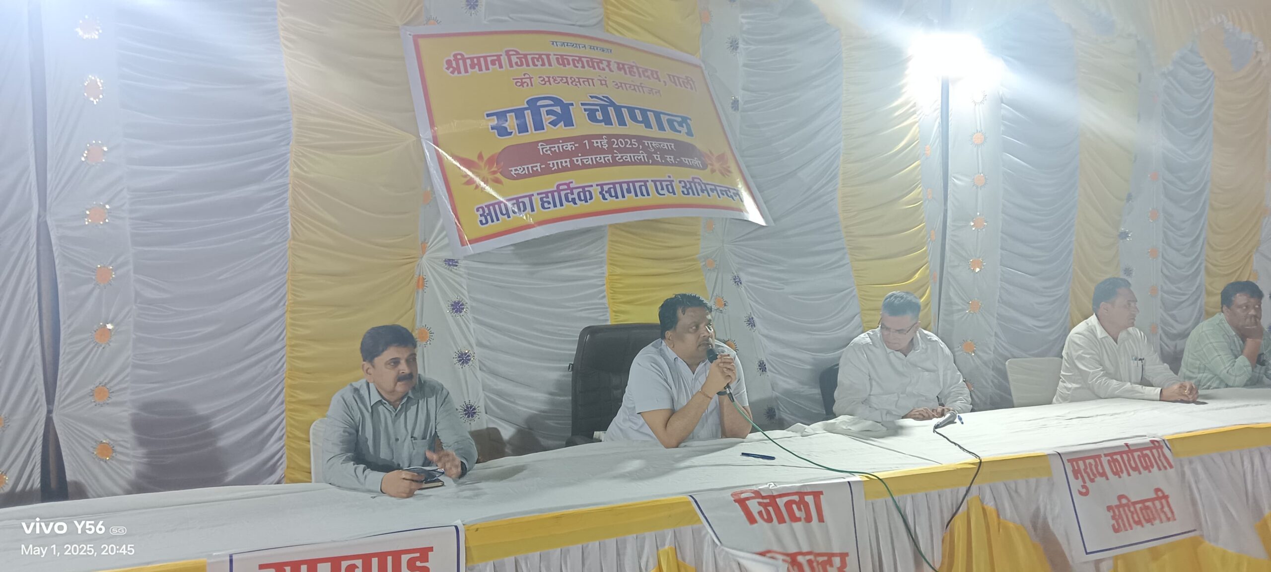 आयोजित रात्रि चौपाल में अतिरिक्त जिला कलक्टर डॉ बजरंग सिंह, मुख्य कार्यकारी अधिकारी जिला परिषद मुकेश चौधरी ,तहसीलदार जितेन्द्र बबेरवाल , विकास अधिकारी ,सहायक विकास अधिकारी मनोज भाटी , सरपंच व ग्रामीण मौजूद रहे।