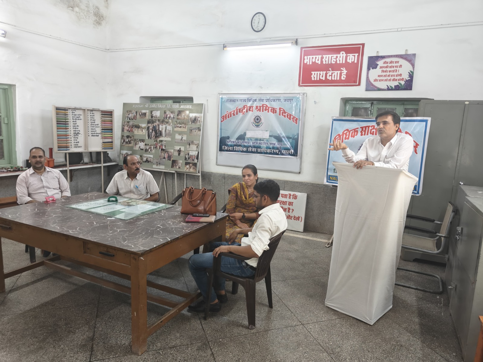 राजस्थान राज्य विधिक सेवा प्राधिकरण जयपुर के तत्वाधान में सचिव जिला विधिक सेवा प्राधिकरण (अपर जिला न्यायाधीश) पाली विक्रम सिंह भाटी द्वारा विश्व मजदूर दिवस सप्ताह के उपलक्ष्य में महाराजा श्री उम्मेद मील लिमिटेड पाली में विधिक जागरूकता कार्यक्रम का आयोजन किया गया। शिविर में सचिव जिला विधिक सेवा प्राधिकरण द्वारा श्रमिकों के कानूनी अधिकार, नालसा (असंगठित क्षेत्र के श्रमिकों के लिए कानूनी सेवाएं) योजना, 2015, उद्योगों और कार्यालयों में श्रमिकों के अधिकार, रोजगार के अधिकार, असंगठित मजदूरों से तात्पर्य, न्यूनतम मजदूरी अधिनियम, ई-श्रम पोर्टल आदि की जानकारी देते हुए कार्यस्थल सुरक्षा और श्रम कानूनों के प्रति मजदूरों को जागरूक किया।