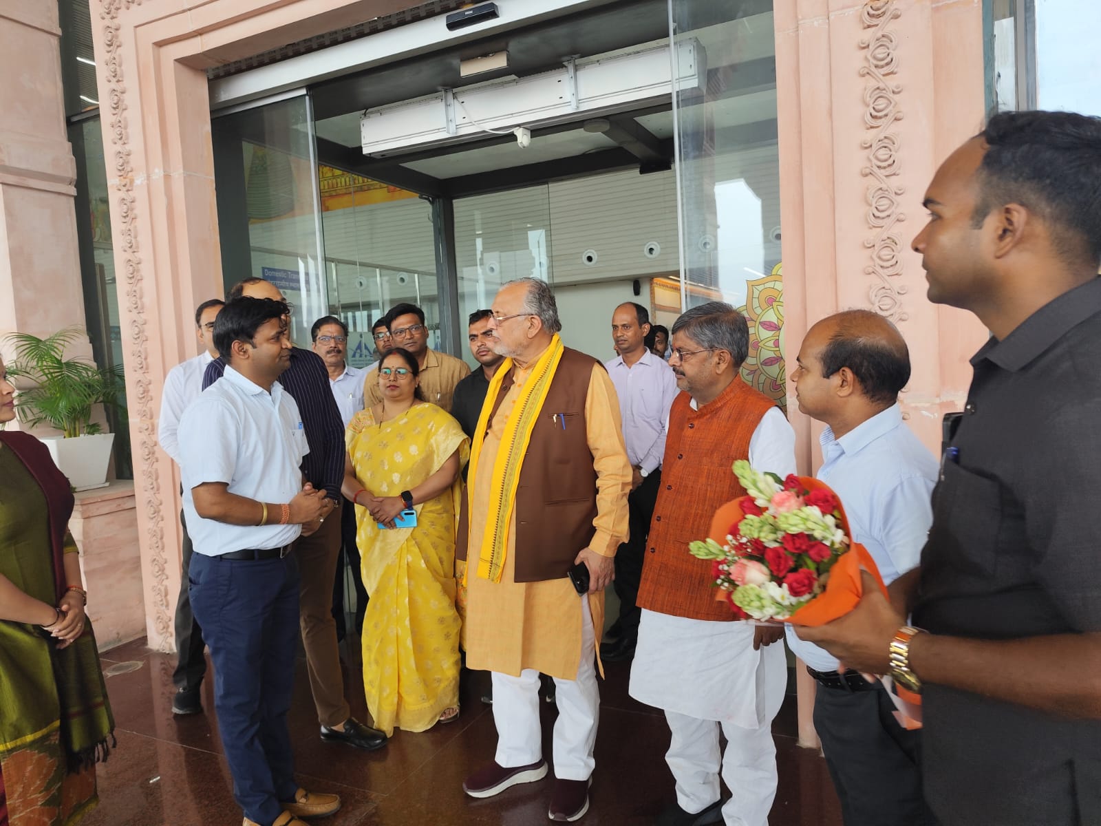 उत्तर प्रदेश सरकार के वित्त एवं संसदीय कार्य मंत्री सुरेश कुमार खन्ना का आज अयोध्या जनपद में अंतर्राष्ट्रीय महर्षि वाल्मीकि एयरपोर्ट पर आगमन हुआ। एयरपोर्ट पर मंत्री सुरेश कुमार का भव्य स्वागत रुदौली विधायक रामचन्द्र यादव, मुख्य कोषाधिकारी श्रीमती ममता सिंह सहित अन्य प्रशासनिक अधिकारियों द्वारा किया गया।