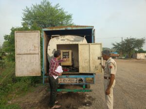 जिला पुलिस अधीक्षक श्री सुधीर जोशी ने बताया कि लोकल एव स्पेशल एक्ट के विरूद्ध कार्यवाही करने के दिये गए निर्देश के क्रम मे एएसपी सरिता सिंह के निर्देशन व डीएसपी भदेसर अनिल शर्मा के सुपरविजन व थानाधिकारी भदेसर धर्मराज मीना उप निरीक्षक के नेतृत्व में एएसआई निहाल सिंह व पुलिस जाप्ता द्वारा मुखबिर की सूचना पर चित्तौडगढ उदयपुर सिक्स लेन हाईये रोड पर संचालित होटल तुलसी पर अवैध रूप से पेट्रोलियम पदार्थ भण्डारण करने की सूचना पर जिला रसद अधिकारी चित्तौडगढ श्री हितेश जोशी को अवगत करा अवैध रूप से भण्डारण किये गये कुल वजन 2840 लीटर पेट्रोलियम पदार्थ को जब्त किया गया व उपयोग मे लिए जा रहे तीन वाहन 2 पिकअप व एक टैंकरनुमा पिकअप को जब्त किया गया। होटल तुलसी के संचालक ललित पुत्र मोहन खटीक निवासी भदेसर थाना भदेसर जिला चित्तौडगढ़ को नामजद कर प्रकरण दर्ज किया गया। प्रकरण में अनुसंधान जारी है।