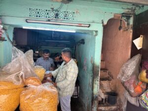 प्रदेशभर में त्यौहार के मध्यनजर पाली जिले में विशेष अभियान के तहत दूध व दूध से बने खाद्य पदार्थो की बढ़ती खपत के तहत जिला खाद्य सुरक्षा अधिकारियों द्वारा सोजत सिटी में 5 मिष्ठान के प्रतिष्ठानों पर दबिश देकर कलर युक्त मिठाई निर्माण करने वाले खाद्य कारोबारकर्ताओं पर बड़ी कार्यवाही को अंजाम दिया गया। आयुक्त खाद्य सुरक्षा औषधि नियंत्रण एच गुईटे के दिशा निर्देश व सीएमएचओ डॉ विकास मारवाल के निर्देशानुसार पाली जिले के सोजत सिटी में 25 वर्ष पुरानी दुकान चाचाजी मिठाई वाला मैन बाजार सोजत सिटी पर दबिश देकर इण्डस्ट्रीयल कलर का उपयोग कर मिठाई बनाने वाले खाद्य कारोबारकर्ता के गोदाम व दुकान पर कार्यवाही की गयी। इस दबिश के दौरान शहर के विभिन्न प्रतिष्ठानो से अधिक कलरयुक्त 182 किलो मिठाई को नष्ट करवाया गया। साथ ही सोजतसिटी में छप्पन भोग मिष्ठान भण्डार, एफबीओ गगन गुप्ता की चाचा मिठाई वाला, वैष्णव स्वीट का निरिक्षण किया गया तथा स्वच्छता रखने की हिदायत दी। इस कार्यवाही के दौरान खाद्य सुरक्षा अधिकारी सुरेश चन्द्र शर्मा व दिलीप सिहं यादव ने 5 मिष्ठान भंडारों से 6 सेम्पल लिये। कार्यवाही के दौरान सोजत सिटी के बिरस्टो कैफे की प्राप्त शिकायत पर कार्यवाही करते हुये पनीर का सेम्पल लिया गया। इन सभी खाद्य कारोबारकर्ताओं पर कार्यवाही करते हुये इनके सेम्पल जांच हेतु जन स्वास्थ्य प्रयोगशाला में भिजवाये गये। जहां से प्राप्त रिपोर्ट के आधार पर मिलावट करने वाले खाद्य कारोबारकर्ताओ के खिलाफ कठोर कानूनी कार्यवाही को अंजाम दिया जायेगा। खाद्य सुरक्षा अधिकारी दल के साथ ऑपरेटर ओम प्रकाश प्रजापत, रेक्सो चालक लक्ष्मणदान चारण उपस्थित रहे।
