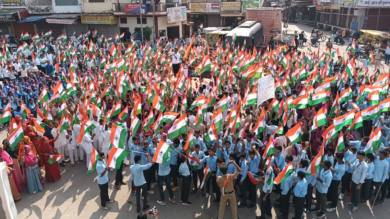 वीओं-शहर के कलक्ट्रेट चौराहे से प्रारम्भ हुई तिरंगा यात्रा रोडवेज बस स्टैण्ड से होते हुए सुभाष चौक, गोल प्याऊ चौराहे पहंुच सम्पन्न हुई। अभियान के तहत जिला कलक्टर आलोक रंजन और पुलिस अधीक्षक मनीष त्रिपाठी के नेतृत्व में शुरू हुई तिरंगा रैली मुख्य सड़क से गुजरते हुए गोल प्याऊ चौराहा पहुंची। यात्रा में शामिल स्काउट एण्ड गाइड, एनसीसी, स्कूली बच्चों ने हाथों में तिरंगा झंडा लेकर देशभक्ति के नारे लगाते हुए चल रहे थे। यात्रा मे प्रशासनिक अधिकारी, कर्मचारी, जनप्रतिनिधि, स्काउट गाईडर्स सहित आमजन शामिल हुए। यात्रा के समापन पर जिला कलक्टर ने हर घर तिरंगा अभियान की जानकारी देते हुए लोगों को तिरंगा फहराने के लिए प्रेरित किया। जिला कलक्टर ने बताया कि स्वतंत्रता दिवस को उत्सव की तरह मनाने के लिए विभिन्न गतिविधियों के माध्यम से जिलेवासियों में देश प्रेम और राष्ट्रीय ध्वज के प्रति गौरव की भावना का संचार किया जा रहा है। तिरंगा रैली में घर-घर तिरंगा के देशभक्ति के नारे लगाते हुए तिरंगे झंडे के प्रति जन जागृति का कार्य किया जा रहा है। जिला स्तर से ग्राम पंचायत स्तर तक विभिन्न गतिविधियां आयोजित की जा रही हैं।