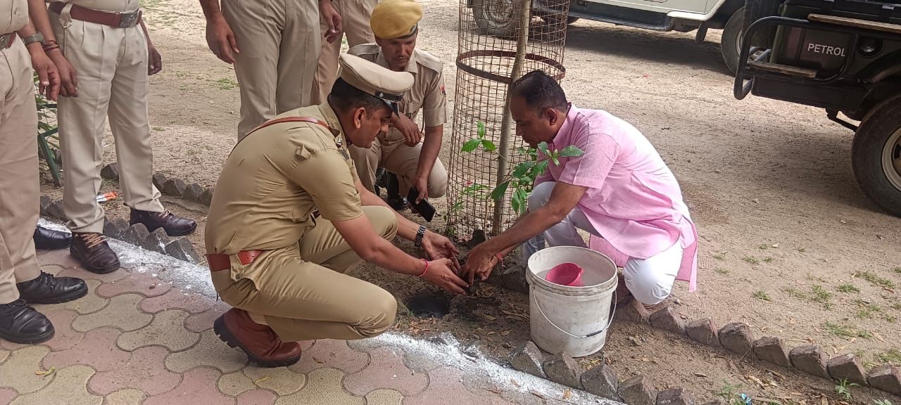 पुलिस थाने पर ध्वजा रोहण कर एक पेड़ मां के नाम पर वृक्षारोपण किया।