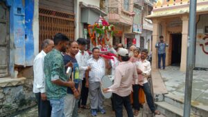 ठाकुर जी को रेवाड़ी में बिठाकर पूजा अर्चना आरती कर भगवान के भोग लगा कर ढोल नगाड़ों के साथ मंदिर में भेट करने पहुंचे।भंवर सुथार रमेश सुथार s% पूनमचंद सुथार की परिवार की तरफ से आज गणेश चतुर्थी पर भगवान चारभुजा नाथ की नई रेवाड़ी कृष्ण नवयुवक मंडल को भेट की। जिस कृष्ण नवयुवक मंडल के सभी सदस्य और मंदिर पुजारी उनके घर पर जाकर भगवान ठाकुर जी को रेवाड़ी में बिठाकर पूजा अर्चना आरती कर भगवान के भोग लगा कर ढोल नगाड़ों के साथ मंदिर में भेट करने पहुंचे। जिस पर प्रकाश सिसोदिया घनश्याम छिपा अरविंद सिसोदिया श्रवण सिसोदिया कमलेश सोनी दिलखुश सोनी लिलेश खत्री मुकेश सुथार मुकेश दवे संत तुलसीदास वैष्णव मदन दर्जी जगदीश सुथार जयंती सुथार हिम्मत सुथार हस्ती सुथार इंद्रा दवे मदन सुथार सभी कैलाश तेली सभी भक्त मौजूद थे।