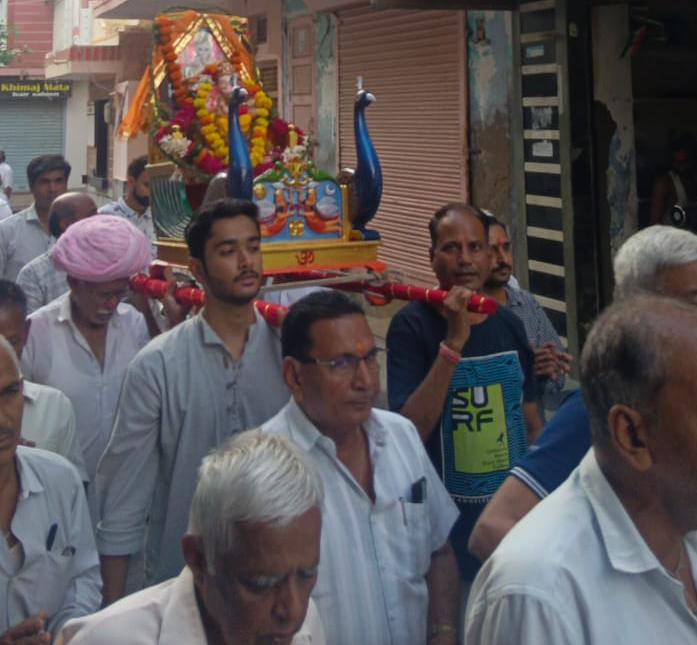 भूतनाथ मंदिर के मंदिर के सामने गणपति मंदिर से रेवाड़ी निकाली कृष्ण नवयुवक मंडल द्वारा भजन गाते हुए मुख्य मार्गो से मेन बाजार हॉस्पिटल रोड पुरानी कचरी होते हुए वापिस गजानंद मंदिर पहुंची वहां पर आरती हुई जिसमें सभी पुरुष और महिला मंडल मौजूद रहे।