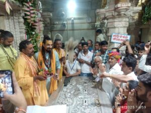 श्री सांवरियाजी की शोभा यात्रा मंदिर परिसर से बैंड बाजे ढोल नगाड़ों के साथ शुरू हुई।