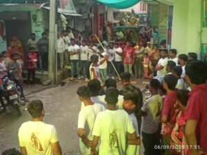 गणपति बप्पा मोरिया अगले बरस तू जल्दी आ खबर भादसोडा कस्बें 10 दिन गणपति जी की प्रतिमा की शोभायात्रा दिन में 11:15 बजे हवन यज्ञ और पूजा अर्चना कर पंडित के द्वारा वैदिक मंत्र के द्वारा पूजा अर्चना कर करीब 1:00 बजे रावला चौक व आजाद चौक से डीजे और बैंड बाजा व ढोल नगाड़े के साथ शोभा यात्रा प्रारंभ हुई कस्बें के मुख्य मार्गो से होते हुए आजाद मोहल्ला हताई चौक आचार्य मोहल्ला सदर बाजार सांवलिया जी का मंदिर से बस स्टैंड होते हुए शोभा यात्रा बस स्टैंड पर पहुंची जहां पर जगह जगह आतिशबाजी करते हुए चल रहे थे जहां पर अखाड़ा कल्याण का निम्बाहेड़ा बजरंग दल व्यायाम के कार्यकर्ता 50 व्यक्तियों ने अखाड़ा का प्रदर्शन कर किया गया और अपनी कला अलग-अलग तरीके से पेश की गई जगह-जगह भगवान गणपति जी के शोभायात्रा में भक्तों में प्रसाद वितरण किया गया साथ ही पुलिस के जवान इस शोभा यात्रा की मॉनीटरिंग कर रहे थे शोभा यात्रा का विसर्जन शनि महाराज की नदी में पूजा अर्चना कर शनि महाराज की नदी में विसर्जन करेंगे दुसरी गणेश नवयुग मंडल के कार्यकर्ता इस शोभायात्रा में चल रहे थे साथ ही शिव नवयुग मंडल शोभायात्रा के मुख्य मार्ग से होते हुए गणपति जी को विसर्जन करने के लिए विरोली डेम ले जाकर पूजा अर्चना कर विसर्जन किया जाएगा