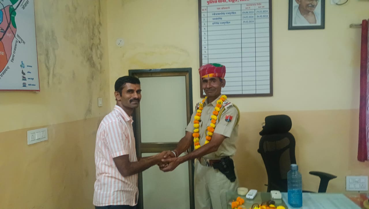 देसूरी थाने में नए थानाधिकारी मीणा के ज्वाइनिंग पर किया स्वागत।