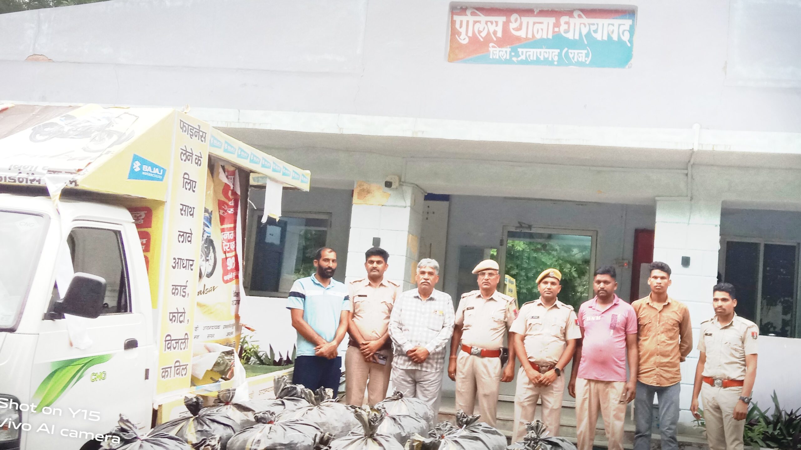 धरियावद-जिला पुलिस कप्तान के निर्देशन में चलाये जा रहे ऑपरेशन चक्रव्यूह के तहत पुलिस उप अधीक्षक नानालाल सालवी के मार्गदर्शन में,कमलचंद मीणा थानाधिकारी धरियावद मय टीम और डीएसटी टीम द्वारा शुक्रवार को मोटरसाइकिल कंपनी का प्रचार करने वाले लोडिंग टेम्पो में स्कीम बनाकर परिवहन किए जा रहे 360 किलोग्राम अवैध डोडाचूरा जिसकी कीमत 54 लाख रुपये व लोडिंग टेम्पो को जब्त किया है। जिस पर धरियावद थाना में प्रकरण दर्जकर अनुसंधान शुरू किया गया। जानकारी के अनुसार शुक्रवार को थानाधिकारी कमलचंद मीणा मय जाप्ते के गश्त धरियावद कस्बे की तरफ आ रहे थे कि पुराने बस स्टैंड के पास रोड पर एक बजाज कंपनी मोटरसाइकिल की एडवरटाइजमेंट करने वाला लोडिंग टेंपो आगे-आगे चल रहा था,जो पुलिस के वाहन को देखकर टेम्पो चालक लोडिंग टेम्पो को तेज गति से भरे बाजार में भगाकर टेम्पो को सुकली नदी के किनारे पर छोड़कर नदी में कूदकर झाड़ियो का फायदा उठाकर फरार हो गया। पुलिस टीम द्वारा टेम्पो चालक का पीछाकर संदिग्ध लगने पर टेम्पो की अच्छी से तलाशी ली गई तो टेम्पो के पीछे डाले मे लोहे की चद्दर से करीब दो फीट चौड़ी व 5 फीट ऊंची बॉक्स नमूना स्ट्रेकचर तैयार कर उसके ऊपर बजाज कंपनी के मोटरसाइकिल प्रचार के पोस्टर चिपका रखे हुए नजर आए। लोडिंग टेम्पो के ऊपर का ढक्कन खोलकर देखा गया तो उसमें काले प्लास्टिक के कट्टे नजर आए। जिनको खोलकर देखने पर उन कट्टों में अवैध डोडाचूरा भरा हुआ मिला। जिसका वजन करने पर 18 कुल कट्टो में 360 किलोग्राम अफीम डोडाचूरा होना पाया गया। जिसकी अनुमानित कीमत 54 लाख रुपये थी,जिसको जब्त कर थाना धरियावद में प्रकरण दर्जकर अनुसंधान महेंद्र सिंह थानाधिकारी देवगढ़ के जिम्मेकर अनुसंधान शुरू किया। गठित पुलिस टीम में पन्नालाल सहायक उप निरीक्षक,विनोद कुमार कांस्टेबल,नरेंद्र कुमार कांस्टेबल डीएसटी टीम जिला प्रतापगढ़ की विशेष भूमिका रही।