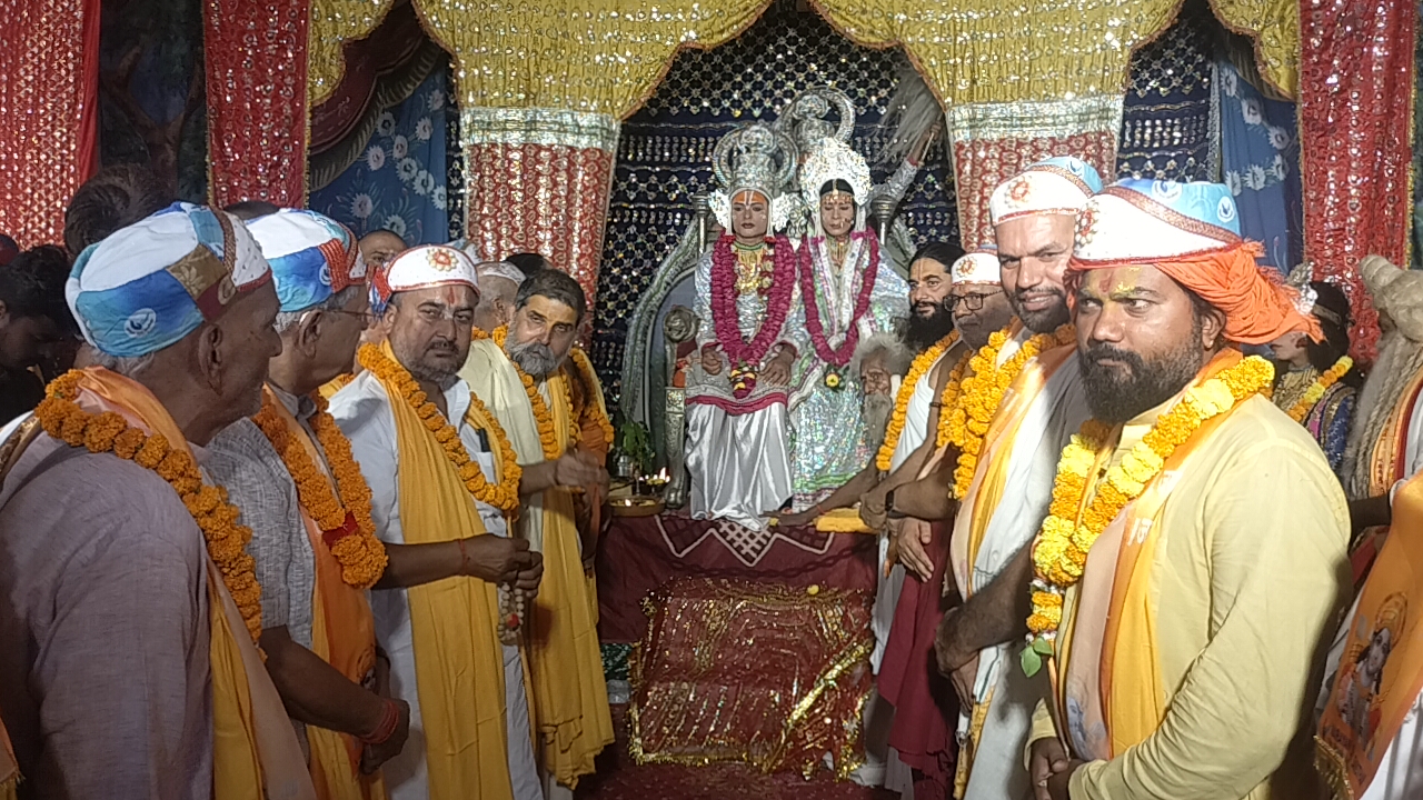 भगवदा चार्य स्मारक सदन में संत श्री तुलसी दास राम लीला समिति के संयोजकत्व में संचालित राम लीला महोत्सव का भव्य समापन 4 अक्टूबर को भगवान श्री राम के राज्याभिषेक के साथ हुआ। ” प्रथम तिलक वशिष्ठ मुनि कीन्हा,, वशिष्ठ जी के रूप में सर्व प्रथम भगवान श्री राम का तिलक दशरथ महल पीठाधीश्वर विंदु गद्दाचार्य स्वामी श्री देवेंद्र प्रसादाचार्य जी महाराज द्वारा किया गया, महाराज श्री द्वारा भगवान के स्वरूप को तिलक लगा कर पुष्पहार,अंग वस्त्र, द्रव्य अर्पित किया। इसी क्रम में जगद गुरु स्वामी श्री राम दिनेसा चार्य जी महाराज द्वारा भगवान को तिलक,पुष्पहार,अंगवस्त्र, द्रव्य अर्पित किया गया। रंग महल पीठाधीश्वर स्वामी श्री राम शरण दास जी महाराज द्वारा भगवान को तिलक,पुष्पहार, अंगवस्त्र, द्रव्य भेंट किया गया,रसिक पीठाधीश्वर स्वामी श्री जनमेजय शरण जी महाराज द्वारा भगवान को तिलक,पुष्पहार, अंगवस्त्र, द्रव्य अर्पण किया गया,बड़ा भक्त माल पीठाधीश्वर स्वामी श्री अवधेश कुमार दास जी महाराज द्वारा भगवान को तिलक पुष्पहार अंगवस्त्र द्रव्य अर्पित किया गया। संकट मोचन सेना के राष्ट्रीय अध्यक्ष श्री महंत संजय दास जी महाराज द्वारा भगवान को तिलक, पुष्पहार, अंगवस्त्र, द्रव्य अर्पित किया गया। निर्वाणी अनी के महामंत्री श्री महंत सत्य देव दास जी महाराज द्वारा भगवान को तिलक, पुष्पहार, अंगवस्त्र,अर्पण किया गया। श्रृंगी ऋषि आश्रम के पीठाधीश्वर महंत श्री हेमंत दास जी महाराज द्वारा भगवान को तिलक, पुष्पहार, अंगवस्त्र,द्रव्य अर्पित किया गया। इस क्रम में महंत नागा श्री राम लखन दास जी महाराज तथा श्री राजेश पहलवान द्वारा भगवान का तिलक कर पुष्पहार, अंगवस्त्र द्रव्य अर्पित किया गया। अयोध्या के विधायक श्री वेद प्रकाश गुप्ता ने भी भगवान का तिलक कर पुष्पहार अंगवस्त्र द्रव्य अर्पण किया। खड़े हनुमान जी के उत्तराधिकारी महंत श्री छवि राम दास जी महाराज द्वारा भगवान को तिलक पुष्पहार, अंगवस्त्र, द्रव्य, अर्पित किया गया। संकट मोचन सेना के राष्ट्रीय अध्यक्ष श्री महंत संजय दास जी महाराज द्वारा राम लीला महोत्सव सकुशल संपादित कराने में बड़ा भक्त माल पीठाधीश्वर स्वामी श्री अवधेश कुमार दास जी महाराज,रसिक पीठाधीश्वर स्वामी श्री जनमेजय शरण जी महाराज सहित अन्य सभी संत महंतो अतिथियों भक्तों के प्रति शुभकामनाएं,आभार ज्ञापित किया।