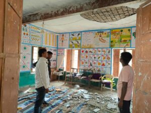 आंगनवाड़ी में जर्जर भवन से प्लास्टर- मलबा गिरने से कई बच्चे घायल।