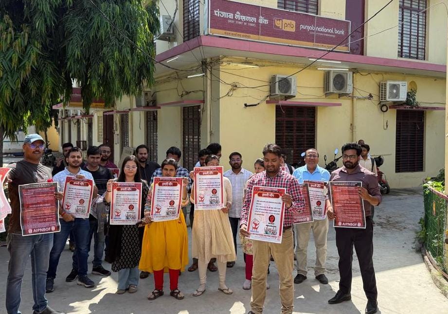 ऑल इंडिया पंजाब नेशनल बैंक ऑफिसर्स फेडरेशन (AIPNBOF) के आह्वान पर अयोध्या सर्किल ऑफिस के सामने अधिकारियों का दो दिवसीय राष्ट्रव्यापी हड़ताल के तहत शुक्रवार को भी धरना-प्रदर्शन जारी रहा। संगठन ने प्रबंधन और सरकार पर अधिकारियों के हितों की अनदेखी का आरोप लगाते हुए अधिकारों और गरिमा की रक्षा के लिए संघर्ष जारी रखने का संकल्प लिया।