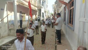 संघ के शताब्दी वर्ष के उपलक्ष में निकला पथ संचलन,हुई पुष्प वर्षा,दिया राष्ट्र निर्माण का संदेश।