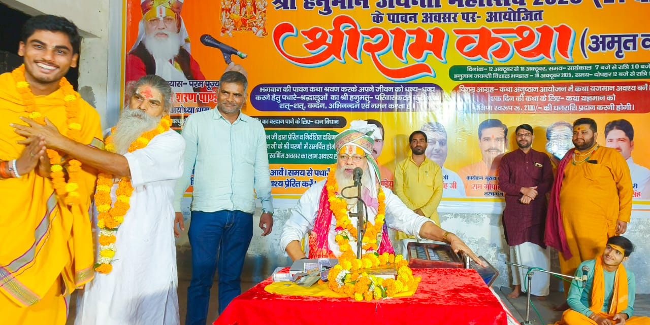 (नवाबगंज )कटरा कुटी पीठ पर चल चल रही सात दिवसीय श्रीराम कथा के पांचवें दिन कथा व्यास मिथिलाशरण पांडे ने राम वन गमन का भावपूर्ण प्रसंग सुना कर श्रोताओं को भाव विभोर कर दिया !