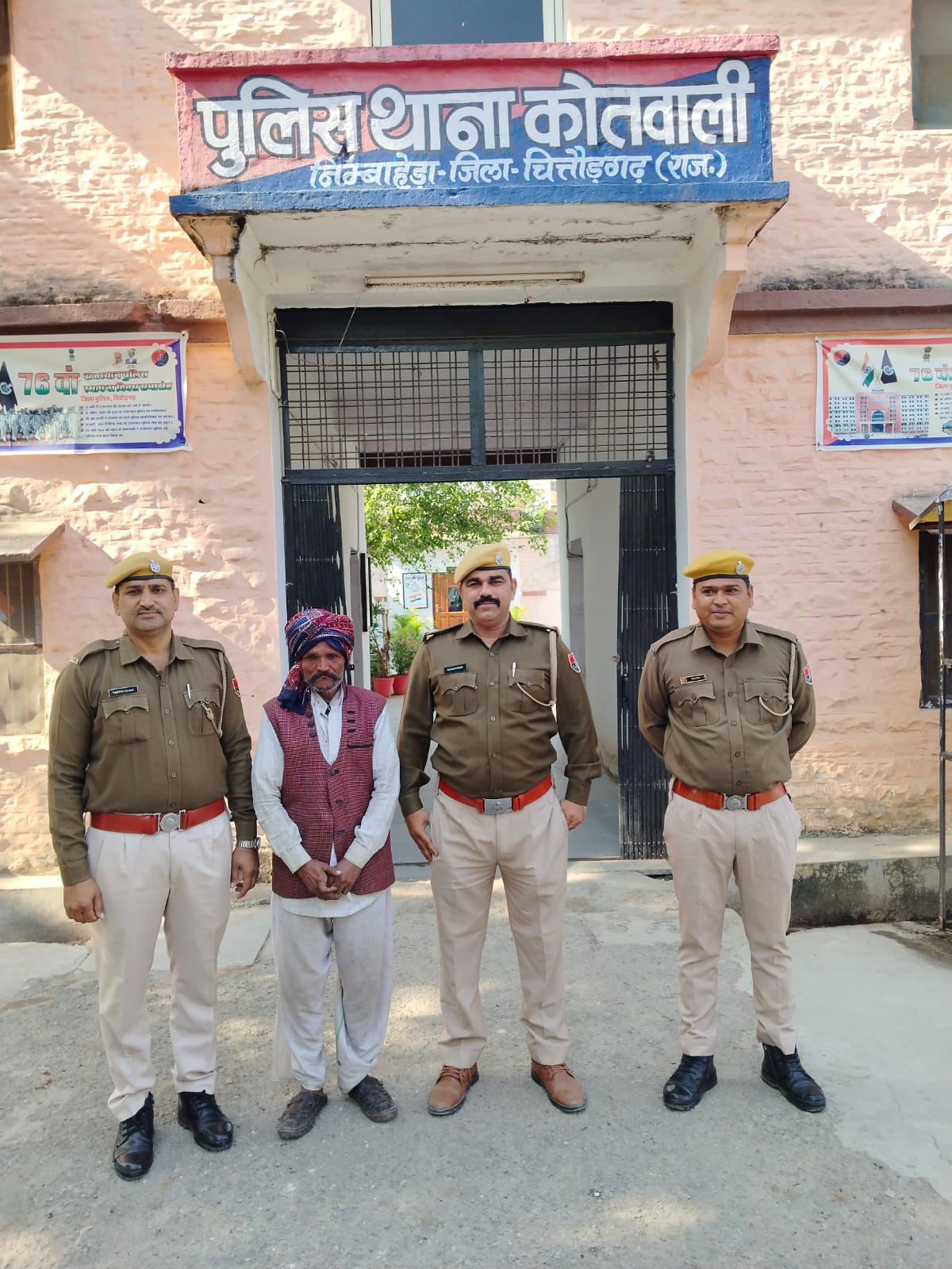 पुलिस अधीक्षक श्री मनीष त्रिपाठी ने बताया कि पुलिस महानिरीक्षक उदयपुर रेन्ज उदयपुर द्वारा चलाये गये विशेष अभियान आपरेशन सुदर्शन चक्र में जिले के वांछित अपराधियों की धरपकड़ हेतु दिशा निर्देश प्रदान किये गये। जिस पर एएसपी चित्तौड़गढ़ सरिता सिंह व डीएसपी निम्बाहेड़ा बद्रीलाल राव के मार्गदर्शन में थानाधिकारी कोतवाली निम्बाहेडा रामसुमेर मीणा पु.नि. के निर्देश पर एएसआई सूरज कुमार के नेतृत्व में कांस्टेबल वीरेंद्र ,सुमित व राकेश द्वारा थाना कोतवाली निम्बाहेडा के 2013 के बलात्कार और अपहरण के मामले में वांछित आरोपी भेरूलाल उर्फ भंवर लाल पुत्र मांगीलाल को अपहरण और बलात्कार के मामले में वांछित होने से भीलवाड़ा में मोती बावजी ps सुभाष नगर से डिटेन कर गिरफ्तार किया गया। आरोपी की गिरफ्तारी में थाना भीम गंज जिला भीलवाड़ा के कानीस्टेबल सुरेंद्र जाट और थाना सुभाष नगर के कांस्टेबल रतनलाल बेरवा का भी योगदान रहा।