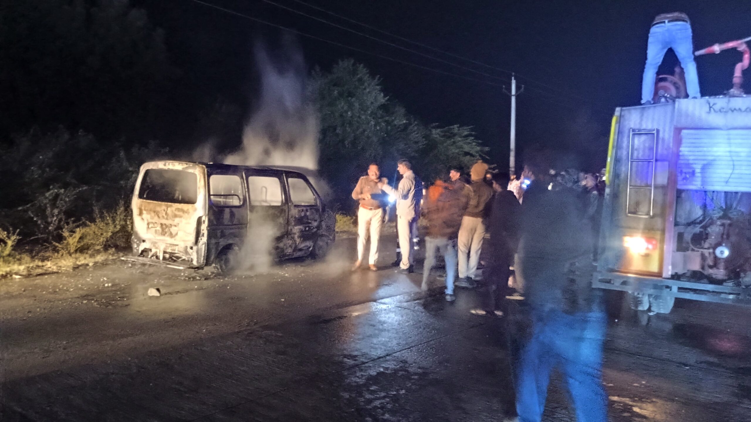 उदयपुर–चित्तौड़गढ़ हाईवे पर नपानिया के पास उस समय सनसनी फैल गई जब एको कार अचानक आग की लपटों में घिर गई। बताया जा रहा है कि गाड़ी में शॉर्ट-सर्किट से आग लगी और देखते ही देखते कार पूरी तरह धधक उठी। ड्राइवर साइड का दरवाजा जाम होने के कारण युवक बाहर नहीं निकल पाया और जिंदा जल गया। मृतक सिंहपुर निवासी और किराना व्यवसायी अंबालाल आचार्य बताया जा रहा है। स्थानीय लोग मौके पर पहुंचे और फायर ब्रिगेड को सूचना दी। भादसोड़ा थाना अधिकारी महेंद्र गुर्जर व हाईवे टीम ने आग बुझवाई, लेकिन तब तक कार राख हो चुकी थी। गैस किट लगे होने की भी संभावना जताई जा रही है। मौके पर भादसोडा थाना अधिकारी महेन्द्र गुर्जर मय जाप्ता व भदेसर डिप्टी तहसीलदार शिव शंकर पारिक नेशनल हाईवे मैनेजर नरेन्द्र सिंह एवं क ई ग्रामीण मौके पर पहुचें थें