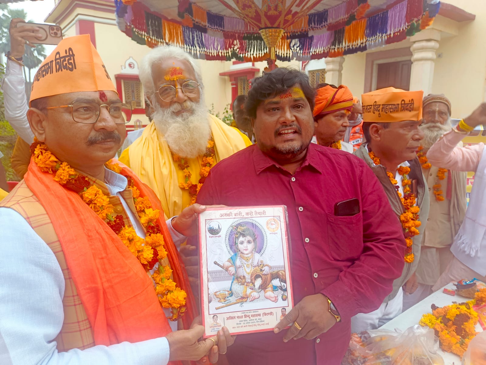 कार्यकर्ताओं ने एक ही नारा एक ही नाम, जय श्रीराम सौगंध राम की खाते हैं, हम हिन्दू राष्ट्र बनाएंगे और “जय हिन्दू राष्ट्र” जैसे गगनभेदी नारों के साथ हनुमानगढ़ी की ओर प्रस्थान किया। हनुमानगढ़ी पहुंचकर गद्दीनशी महंत प्रेमदास जी महाराज को विधिवत छतरी समर्पित की गई और देश की एकता एवं अखंडता की रक्षा का संकल्प लिया गया।इस अवसर पर हिन्दू महासभा के राष्ट्रीय अध्यक्ष रविन्द्र कुमार द्विवेदी ने कार्यकर्ताओं को संबोधित करते हुए हिन्दू राष्ट्र निर्माण और रामराज्य की स्थापना का संकल्प दिलाया। उन्होंने कहा कि जिस प्रकार 70 वर्षों के लंबे न्यायिक संघर्ष के बाद सर्वोच्च न्यायालय के आदेश से श्रीराम जन्मभूमि पर भव्य मंदिर निर्माण का सपना साकार हुआ, उसी तरह श्रीकृष्ण जन्मभूमि मथुरा और काशी विश्वनाथ मंदिर वाराणसी को भी न्यायिक प्रक्रिया के माध्यम से विधर्मी प्रतीकों से मुक्त कराकर भव्य मंदिर निर्माण कराया जाएगा।