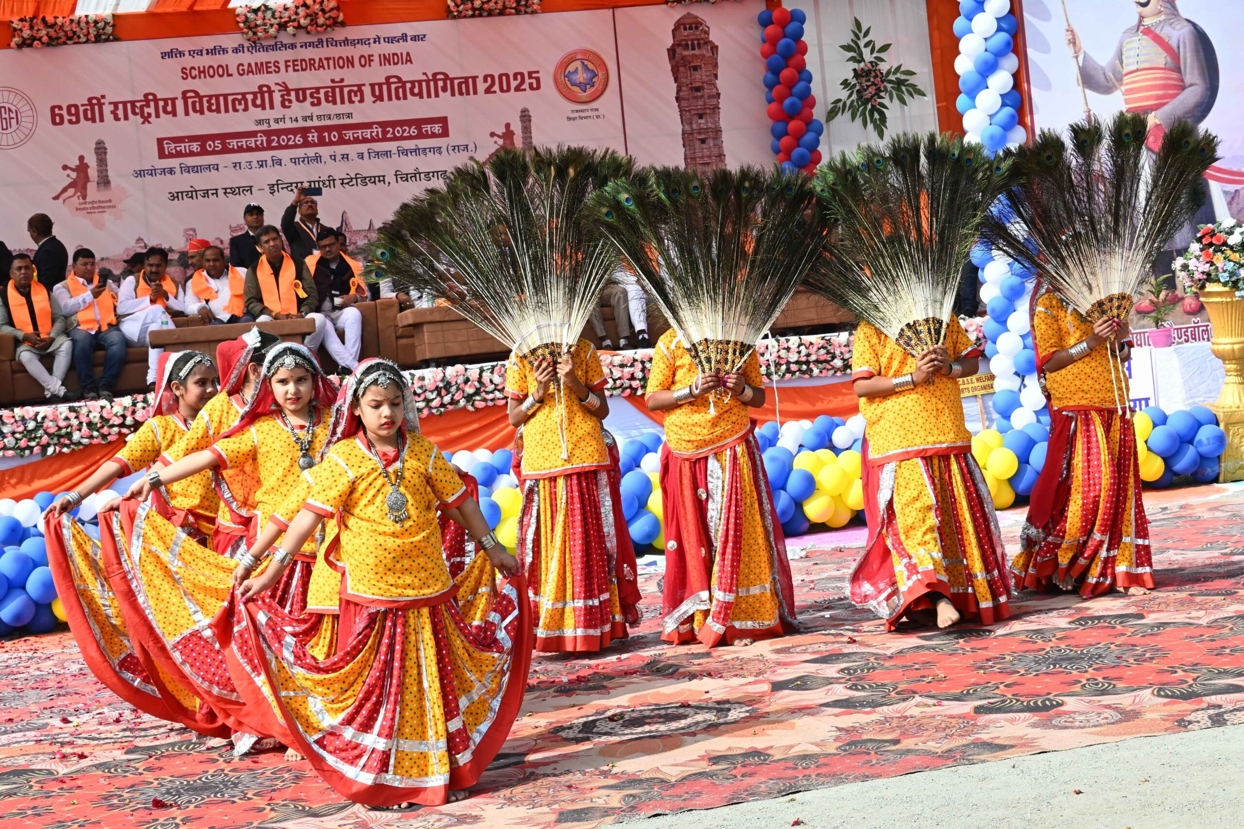 चित्तौड़गढ़ 05जनमवरी। राजस्थान की शौर्य, संस्कृति और बलिदान की प्रतीक ऐतिहासिक धरती चित्तौड़गढ़ में एक भारत-श्रेष्ठ भारत के संदेश के साथ 69वीं राष्ट्रीय विद्यालय स्तरीय हैंडबॉल प्रतियोगिता (अंडर-14) का भव्य शुभारंभ हुआ। राष्ट्रीय स्तर के उद्घाटन समारोह में खेल, संस्कृति और राष्ट्रभाव के अद्भुत संगम देखने को मिला। आगामी 10 जनवरी तक आयोजित होने वाली इस राष्ट्रीय प्रतियोगिता में 65 टीमों के 1050 खिलाडी भाग ले रहे है। उद्घाटन समारोह की शुरुआत अनुशासनबद्ध मार्चपास्ट से हुई, जिसमें विभिन्न राज्यों से आए खिलाड़ियों ने सधे हुए कदमों के साथ अतिथियों को सलामी दी। इस गरिमामय अवसर पर कार्यक्रम के मुख्य अतिथि विधायक चंद्रभान सिंह आक्या ने खिलाडियों को शपथ दिलाई जबकि जबकि अध्यक्षता कर रहे जिला कलेक्टर आलोक रंजन ने प्रतियोगिता के की उद्घाटन की औपचारिक घोषणा की।