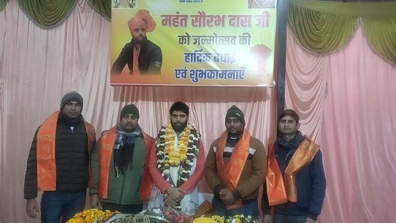 अयोध्या। संजय यादव अयोध्या संतोषी अखाड़ा के उत्तराधिकारी महंत सौरभ दास महाराज का 26वां जन्मदिन उनके निवास/अखाड़ा परिसर में अत्यंत श्रद्धा, भक्ति और धूमधाम के साथ मनाया गया। जन्मदिन के इस पावन अवसर पर संत समाज, पहलवानों, सामाजिक कार्यकर्ताओं एवं बड़ी संख्या में श्रद्धालुओं की उपस्थिति रही।