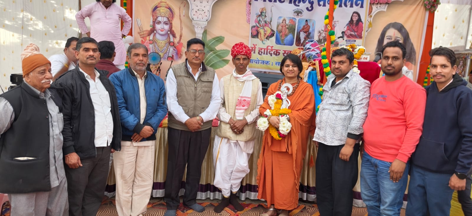 विराट हिंदू सम्मेलन का आयोजन हुआ जिसमें पीठाधीश्वर कथा वाचक साध्वी अपर्णा जी मेनारिया शामगढ़ मीरापीठ गंधेर प्रतापगढ़ राजस्थान एवं मुख्य वक्ता बालू दास जी वैष्णव बौद्धिक प्रवक्ता संघ ने हिन्दू सभा को संबोधित किया जिसमें पीठाधीश्वर साध्वी अपर्णा जी ने बांग्लादेश में हिंदू पर हुआ अत्याचार पर भी प्रकाश डाला एवं बताया कि अगर हिंदू एकत्रित होगा तो निश्चित ही हमारा भारत हिन्दू राष्ट्र जरूर बनेगा अपर्णा जी ने बताया कि हर एक हिन्दू के घर में तलवार होना चाहिए