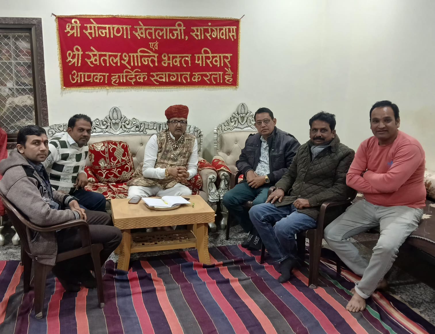 अम्बे माता संतोषी माता ट्रस्ट मंडल की बैठक नवरात्रि की भव्य कार्यक्रम को लेकर सोनाणा खेतलाजी के भक्तराज राजेंद्र S% शांतिलाल जी भंडारी के सानिध्य में मीटिंग का आयोजन हुआ जिस पर ट्रस्ट मंडल के उपाध्यक्ष नरेंद्र सिंह राठौड़ कोषाध्यक्ष हीरादास वैष्णव मोतीलाल माली श्रवण वैष्णव सभी लोग मौजूद थे