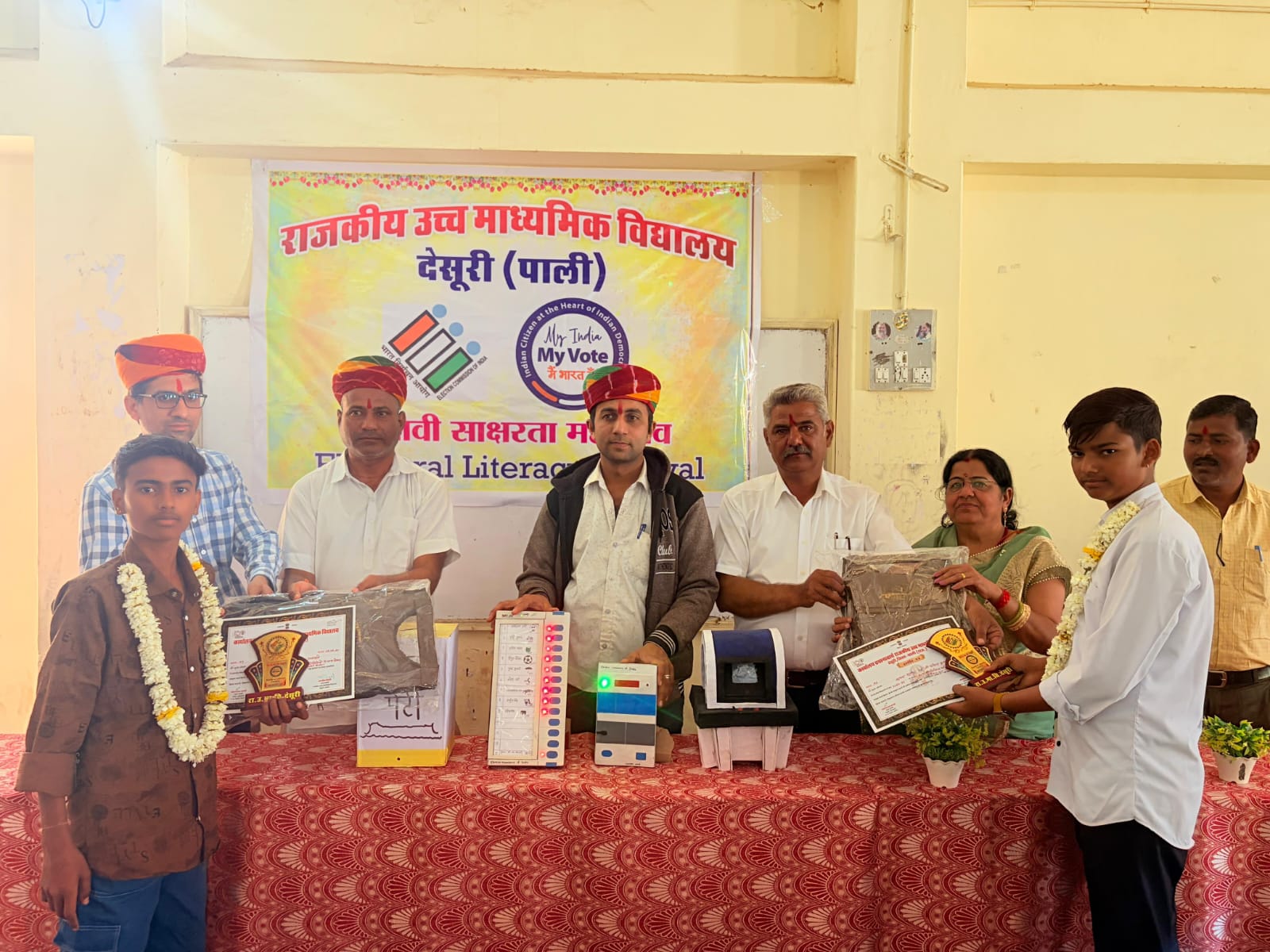 राजकीय उच्च माध्यमिक विद्यालय, देसूरी में वार्षिक उत्सव एवं चुनावी साक्षरता महोत्सव उत्साहपूर्वक आयोजित किया गया। यह कार्यक्रम प्रधानाचार्य श्री जगदीश जी चौधरी के नेतृत्व में तथा भामाशाह मोतीलाल जी माली, घनश्याम जी छीपा एवं अनिल जी जांगिड़ (अंगिरा सैनिटरी) के आतिथ्य में सम्पन्न हुआ, जिसमें विद्यालय के समस्त स्टाफ साथियों की सक्रिय सहभागिता रही। कार्यक्रम में विद्यार्थियों, अभिभावकों एवं स्थानीय नागरिकों की गरिमामयी उपस्थिति रही।