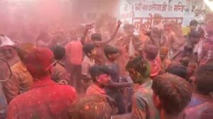 शोभायात्रा के सत्व अबीर गुलाल से खेली होली।