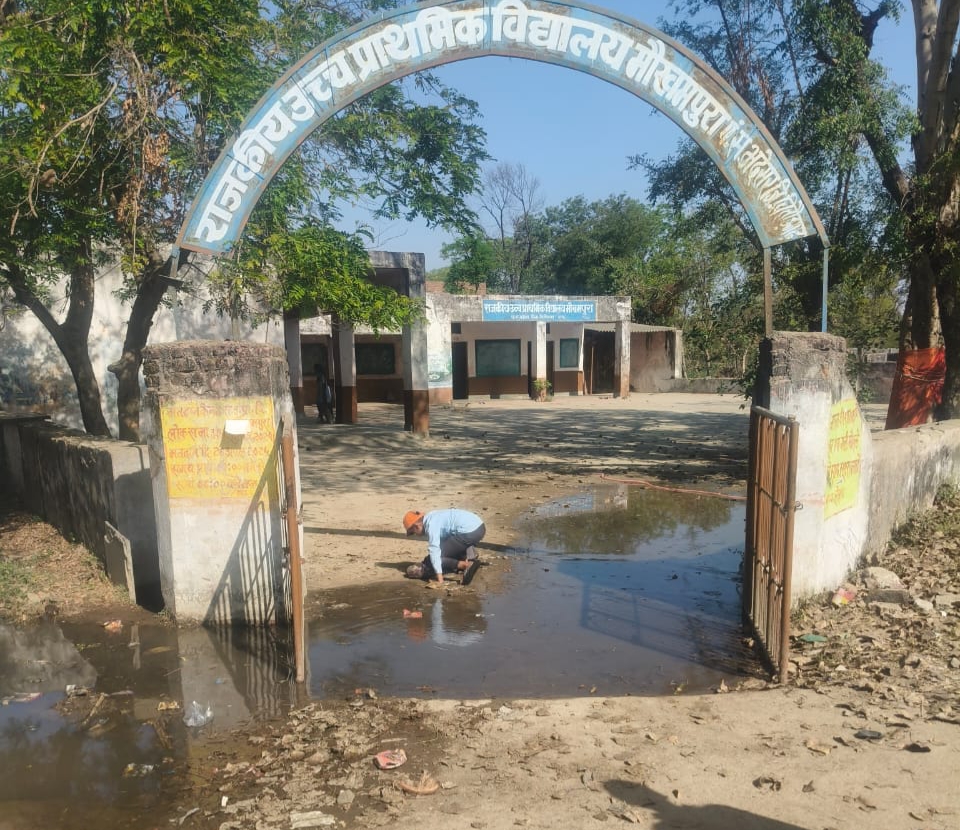 गांव का गंदा पानी सरकारी विद्यालय में भरा हुआ है गंदे पानी में बच्चे गिर रहे हैं राजकीय उच्च प्राथमिक विद्यालय मोखमपुरा मामला पंचायत समिति भदेसर क्षैत्र का ग्राम पंचायत लेसवा के मोखमपुरा का मामला खबर मोखम पुरा गांव में राजकिय उच्च प्राथमिक विद्यालय मोखमपुरा में विधालय परिषद में गांव का गंदा नालियों गंदा पानी विधालय परिषद भर गया है जिसमें विधालय के पढने वाले बच्चे गंदे पानी गिर रहे है एसएमसी सदस्य रतनलाल गाड़ी ने बताया कि मैं ग्राम पंचायत लेसवा में लिखित प्रार्थना पत्र दे चुका हूं जिस पर ग्राम पंचायत में इस कोई ध्यान नहीं दिया बाद में मैंने मौखिक फोन पर ग्राम सचिव साहब को फोन पर भी अवगत कराने पर भी विद्यालय में गंदा पानी भरा होने के कारण इस बात की जानकारी परंतु ग्राम विकास अधिकारी ने बताया कि मै मौके पर आकर देखुगा ये बात फोन पर कही थी परतु संचिव साहब आज दिन ईस समस्या का समाधान आज दिन तक नहीं कर पाए जबकि गंदे पानी में होकर बालक विद्यालय में पहुंचते हैं कई बच्चे गंदे पानी में गिर गए जिसका फोटो मैं भी दिखाई दे रहा है जबकि विद्यालय परिसर में ग्राम पंचायत का ईश्वर कोई ध्यान नहीं जबकि सफाई के नाम पर लाखों का बजट आने के बाद भी गांव में नालिया साफ सफाई नहीं गंदा पानी सड़क पर बना रहता है जबकि सफाई के नाम पर ग्राम पंचायत की ओर से कानों तक तक जूह तक नही रेग पा रही है जबकि लाखों रुपए सफाई के नाम पर केवल ग्राम पंचायत के अधिकारी धज्जियां उड़ा रहे है जबकि एस एम सी के अध्यक्ष ने बताया कि सरपंच साहब को कई बार फोन किया गया फोन की घंटीया धन धनाती बजती है फिर भी मेरा फोन उठाते है