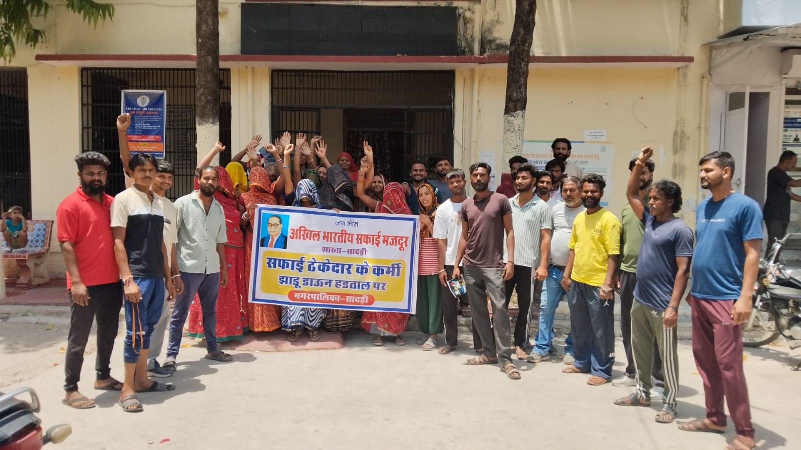 अखिल भारतीय सफाई मजदूर संघ “सादड़ी” द्वारा नगर पालिका सादड़ी के ठेका सफाई कर्मी झाड़ू डाउन हड़ताल पर।