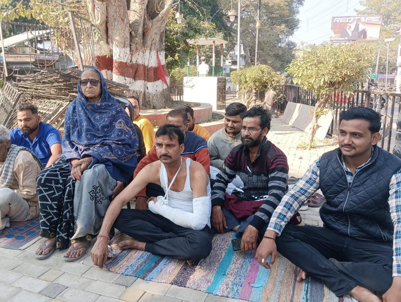 पुलिस की कार्यप्रणाली को लेकर पीड़ित परिवार बैठा धरने पर।