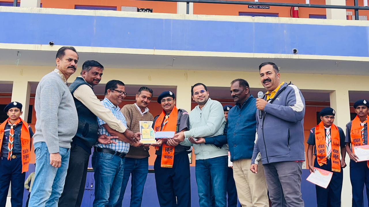 नोबल शिक्षण संस्थान में जम्बूरी से लौटे प्रतिभागियों का किया सम्मान।