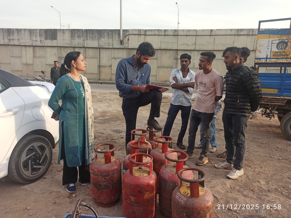 गैस के आठ सिलेंडर व दो गैस भरने की दो मोटरें जब्त।