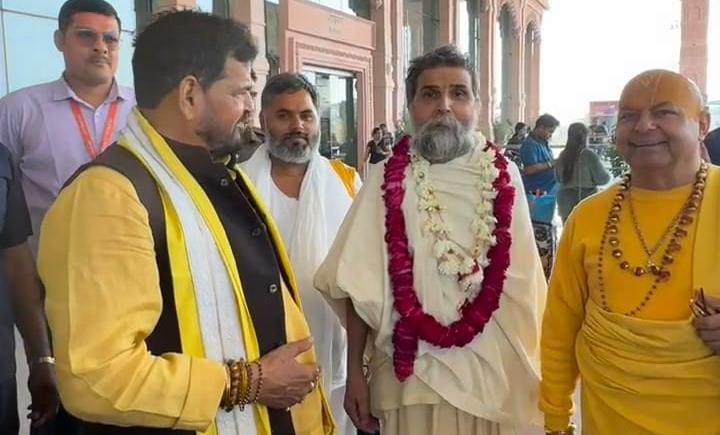 अबूधाबी से अयोध्या लौटे महंत देवेंद्र प्रसादाचार्य।